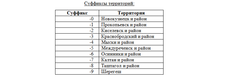 ВНИМАНИЕ! Номер лицевого счета дополняется «суффиксом», присвоенным для каждой территории через дефис, например, 001110011-7, где «001110011» - номер Вашего лицевого счета, «-7» «суффикс» по таблице: