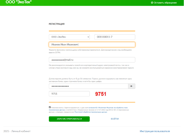 Шаг 2: заполните все предложенные поля и нажмите «ЗАРЕГИСТРИРОВАТЬСЯ»