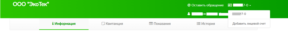 Шаг 5: в верхнем правом углу, нажмите на номер лицевого счета и в выпадающем списке выберите «Добавить лицевой счет»